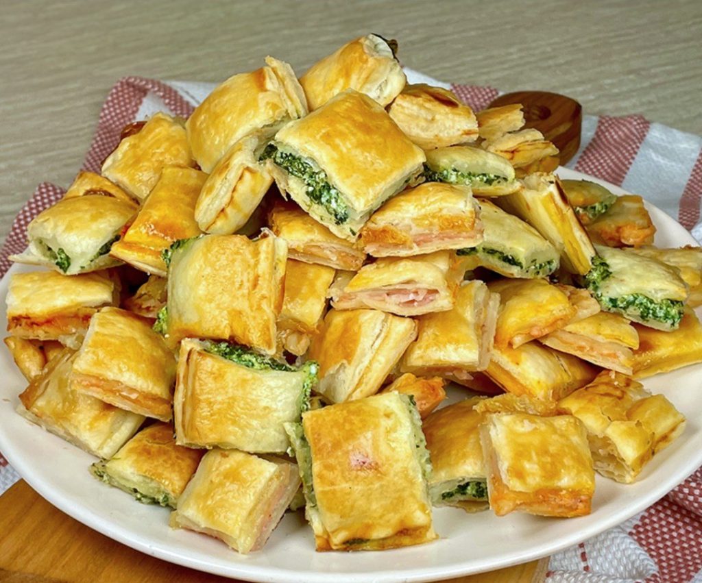 Sastojci: – Pravougaona lisnata testa: 2 komada – Tanko sečena šunka: 130g – Skamorza...
