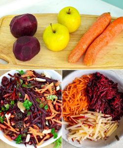 Sastojci 2 srednje velike cvekle (sirove ili kuhane) 1 velika mrkva 1 hrskava jabuka...