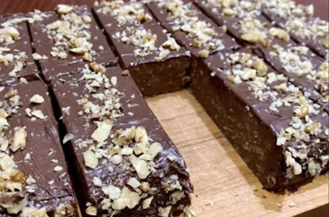 Potrebni sastojci: 500 ml mlijeka, 100 g putera ili margarina, 200 g čokolade za kuhanje, 250 g mljevenih Plazma keksa, Nutella i orasi.