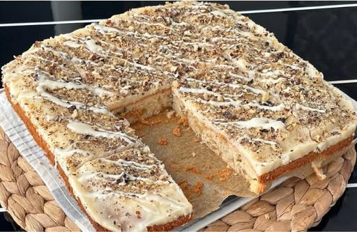7. Izvadi kolač iz kalupa, pospi orasima i isijeci.