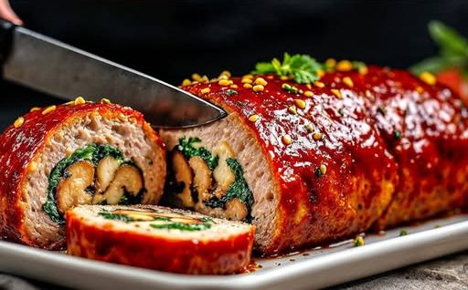 5. **Serviranje:** Ostavite štrucu 10 minuta da se odmori, pa režite debele kriške kako bi se vidio spiralni sloj špinata i šampinjona. Poslužite uz pire krompir, pečeno povrće ili svježu salatu.