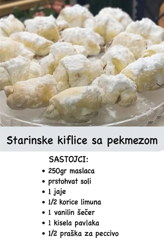 Maslac izmiksirati. Dodati so, jaje, koricu limuna, vanilin šećer u pavlaku. Nastaviti miksiranje. Dodati brašno u koje smo stavili pola praška za pecivo. Testo umesiti i podeliti na dva dela. Ostaviti da se hladi oko 30 minuta. Zatim razviti u krug i praviti kiflice u koje stavljamo malo džema od šljiva. Kiflice peći na 180 stepeni 20-25 minuta. Kada se ispeku uvaljati ih u prah šećer. Prijatno!
